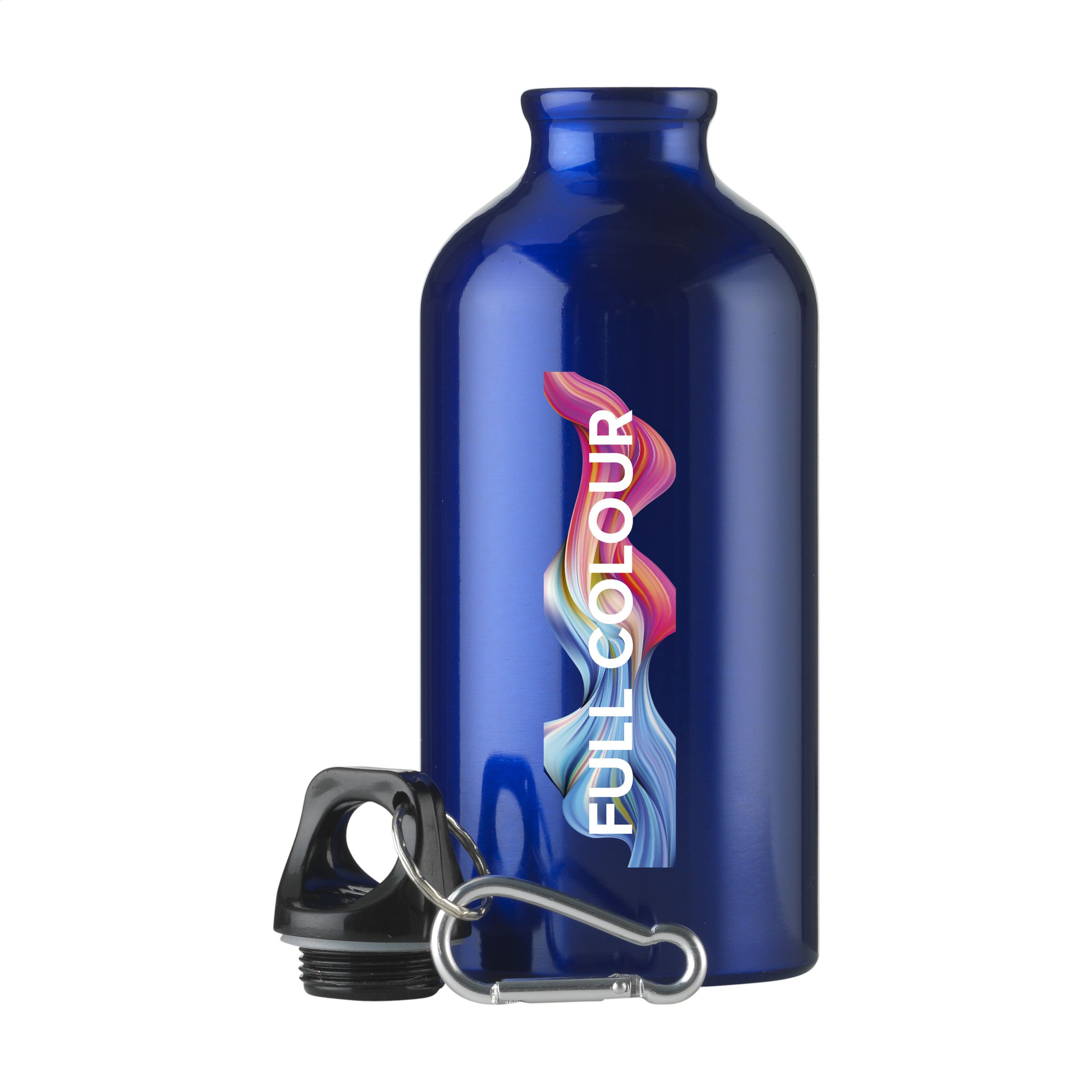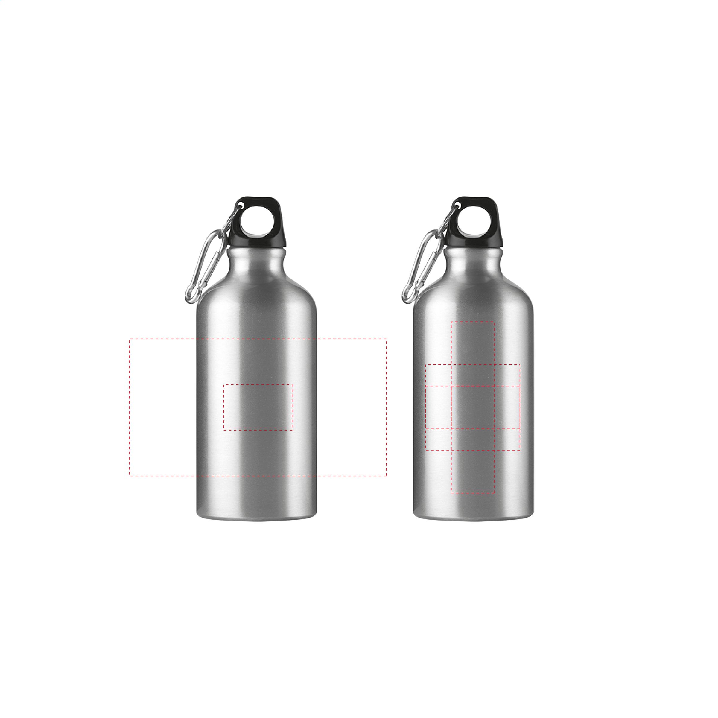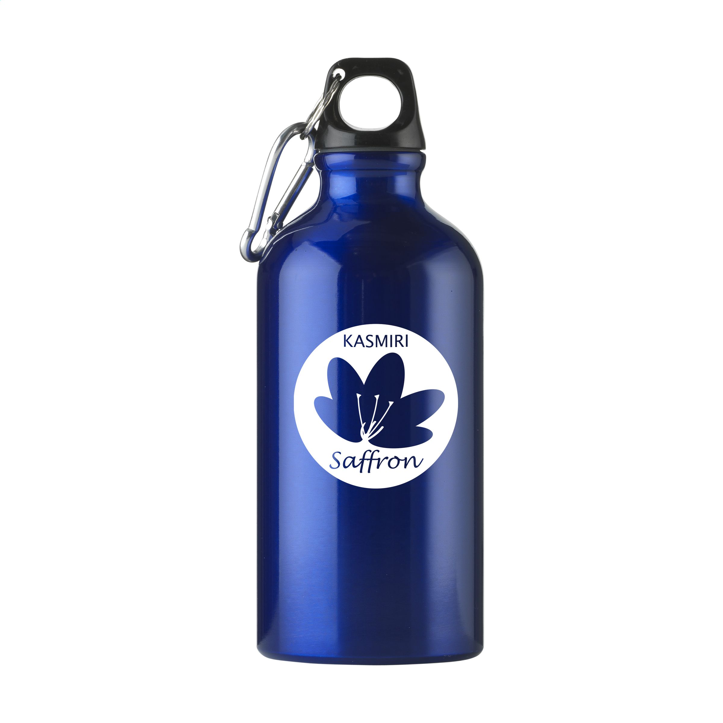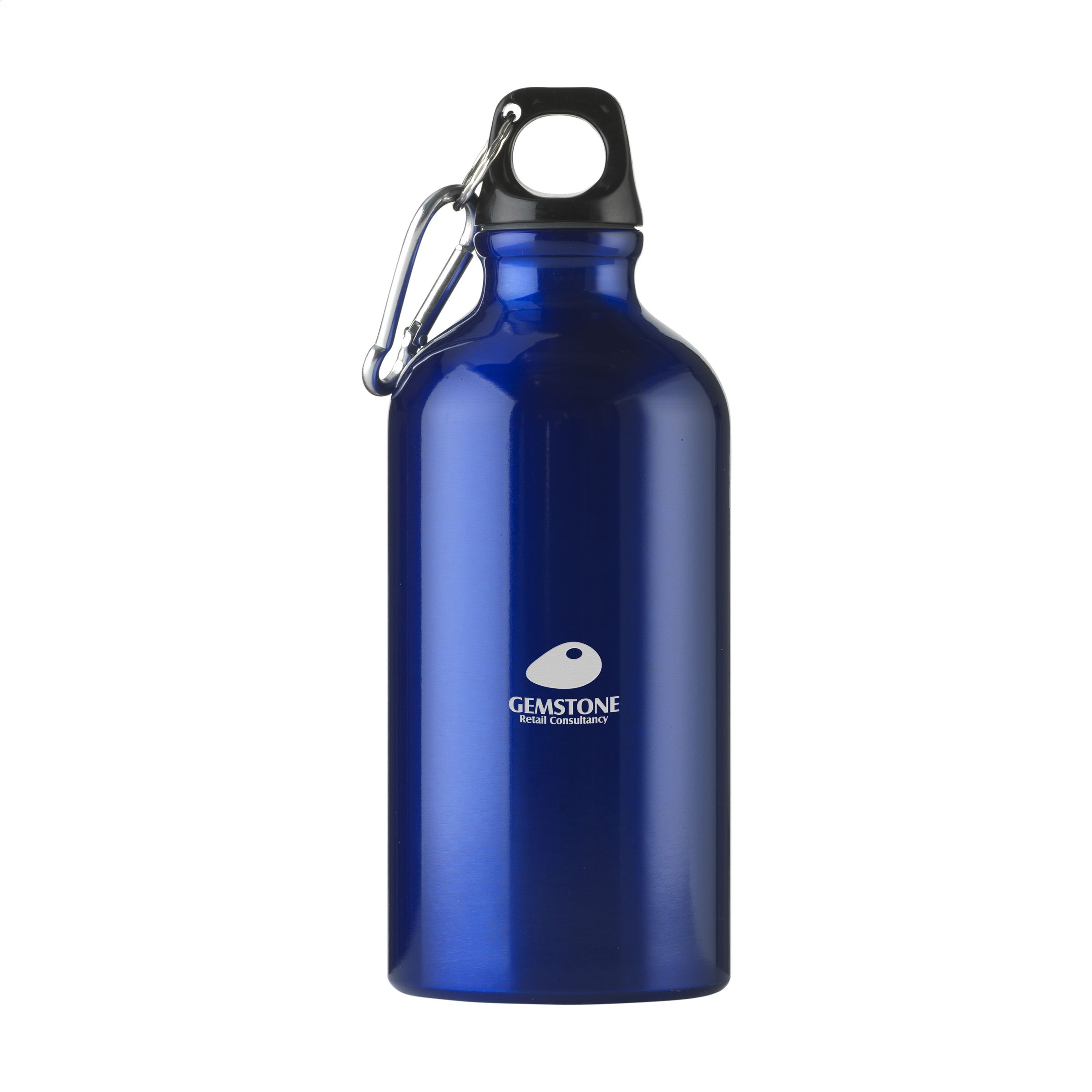 Single-walled, aluminium water bottle with high gloss finish, plastic screw top with keyring and metal carabiner. The carabiner is not to be used for climbing. Leak-free. Capacity 500 ml.