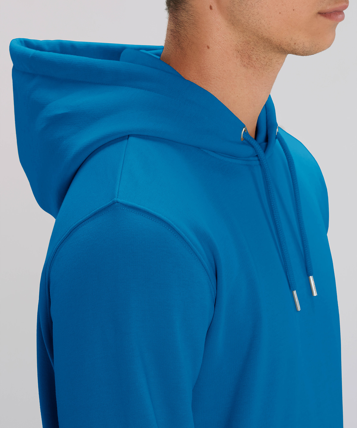 The iconic unisex hoodie sweatshirt in premium brushed 350gsm fleece, 85% organic cotton and 15% recycled polyester. Featuring a double self-fabric hood lining that offers sturdy and durable wear, plus matt silver metal eyelets and drawcord tipping. There is twin-needle top-stitching at 1×1 ribs and armhole, a classic kangaroo pocket design, and a half-moon at the back neck.