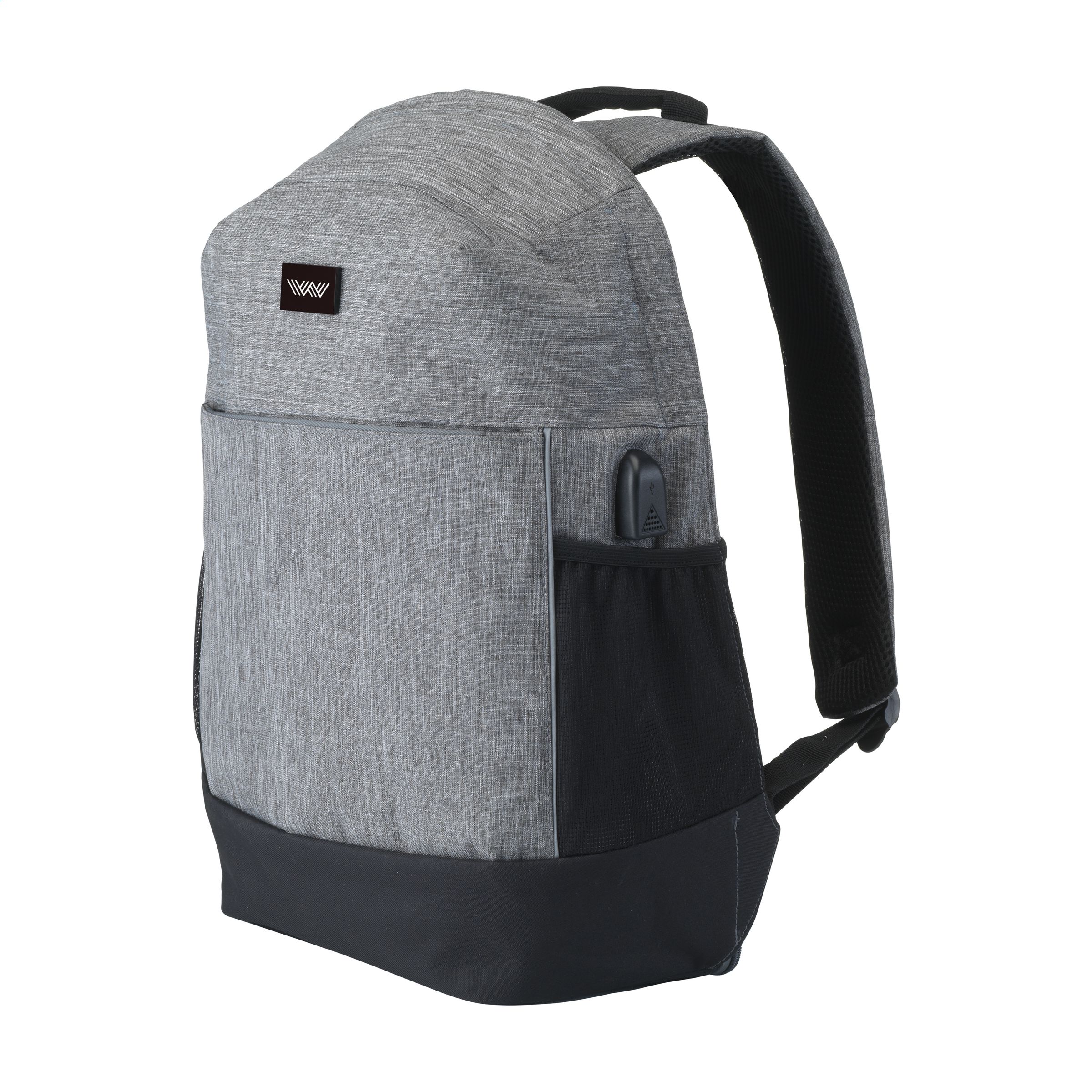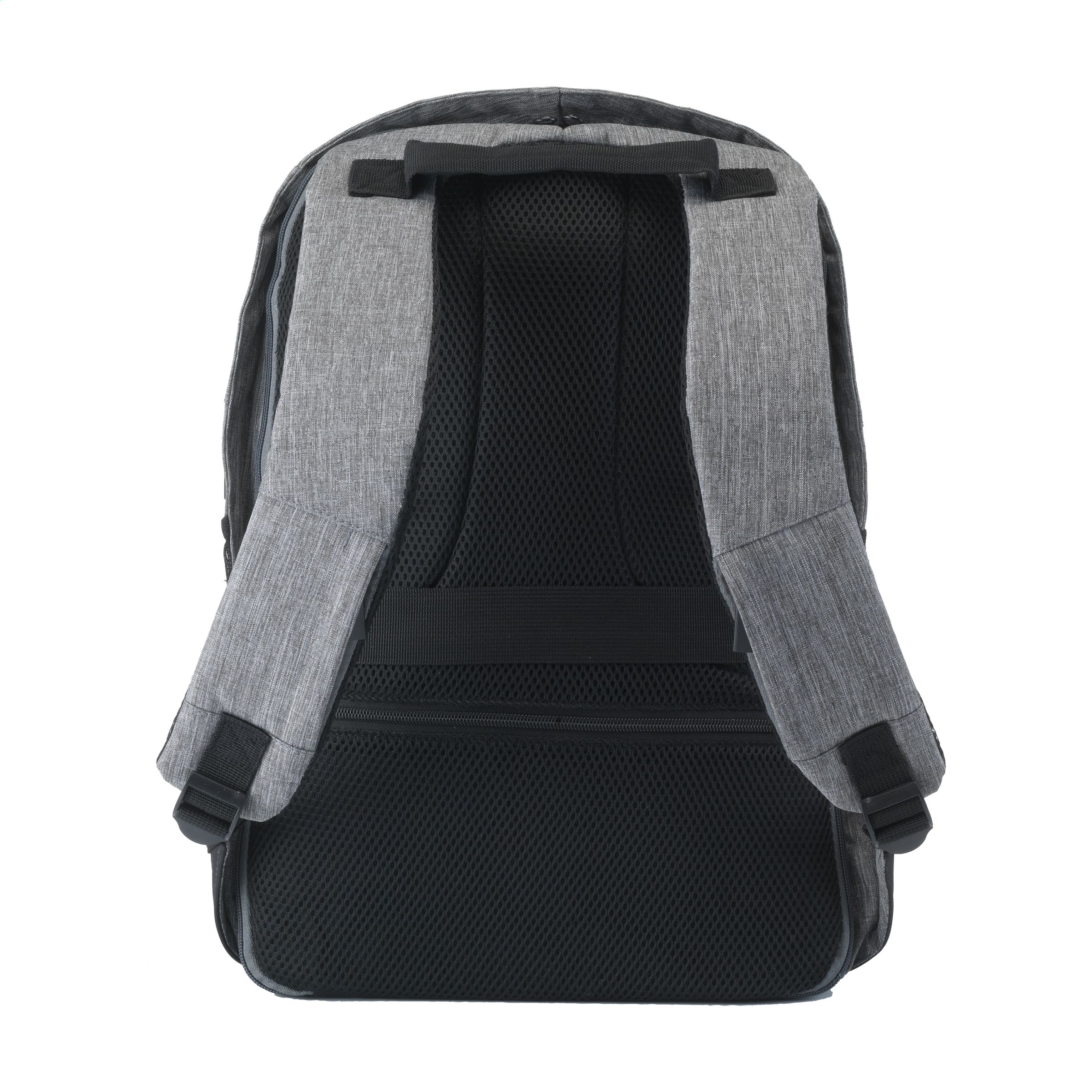 Very complete, weather-resistant and secure anti-theft backpack made of 300D Oxford 2-tone polyester. With hidden zippers on the back that hinder pickpocketing and undesired access to the contents. The large main compartment, which can be almost fully opened, has foam compartments for a laptop up to 15.4” and for a tablet up to 12”, a zipper compartment and various pockets. The front of the backpack has a zipper compartment, reflective highlights for safety in the dark and mesh pockets on the side for carrying a drinking bottle. Both the back and the adjustable shoulder straps are fitted with sturdy foam and have a mesh structure finish. The top and both shoulder straps incorporate concealed RFID-blocking zipper pouches that prevent ‘skimming’. With a reinforced base, carrying strap and an extra strap for attaching the backpack to a trolley. Includes USB connection with charging cable. The bag has a beautiful finish, is weather resistant and perfectly lined, and the wearing comfort is guaranteed. Capacity approx. 20 litres.
